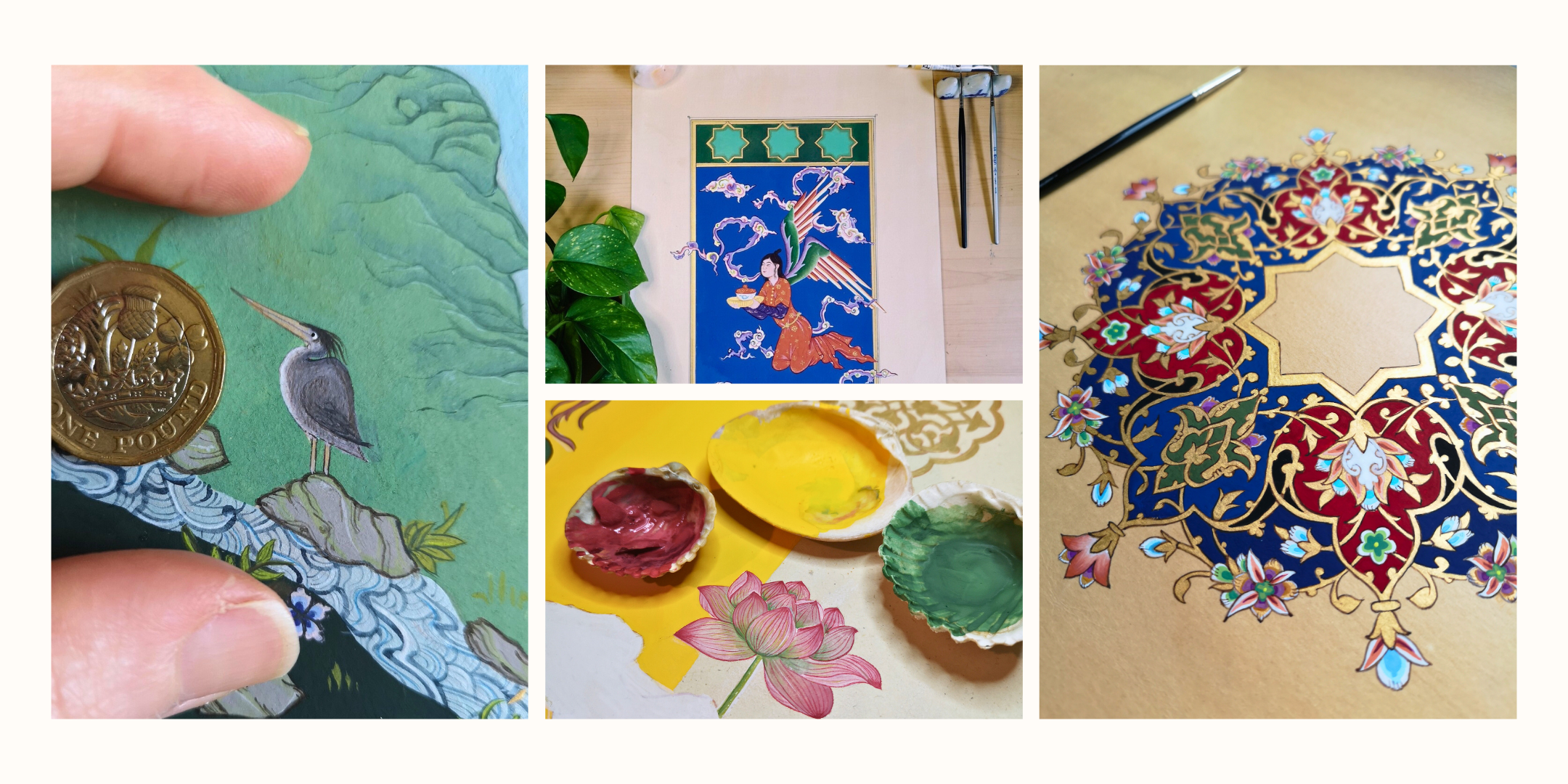 Hi! I’m Munise, a London-born artist of Turkish Cypriot heritage, now based in Sheffield. As a mother and lifelong traveller—especially drawn to the Far East—my work is rooted in tradition, storytelling, and a deep connection to mysticism. I specialise in Tazhib (Islamic illumination) and Persian miniature painting, using centuries-old techniques to create contemporary works that honour the sacred, the symbolic, and the timeless.